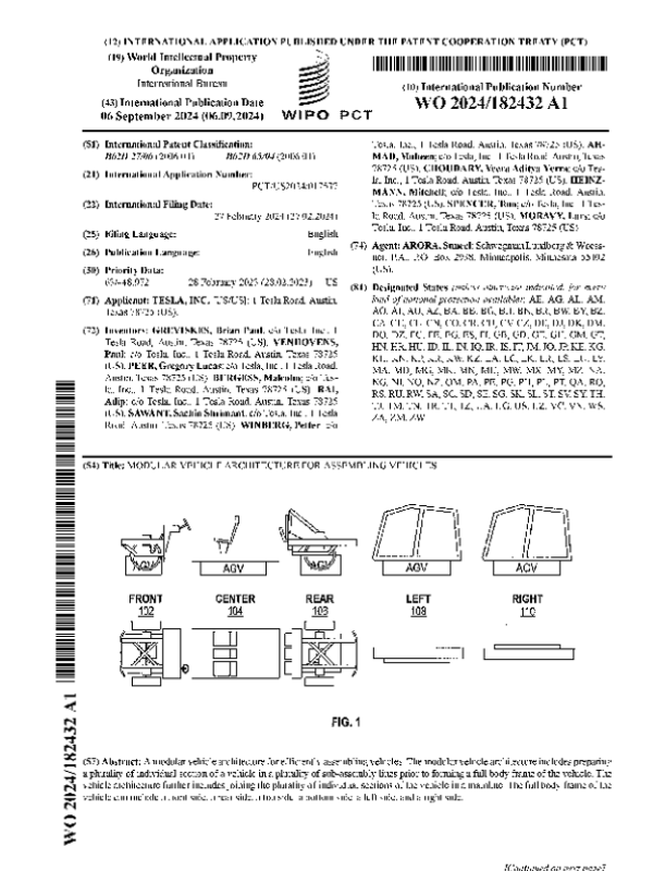 【Tesla&Inc.】【202409】MODULAR VEHICLE ARCHITECTURE FOR ASSEMBLING VEHICLES-73页 技术文档