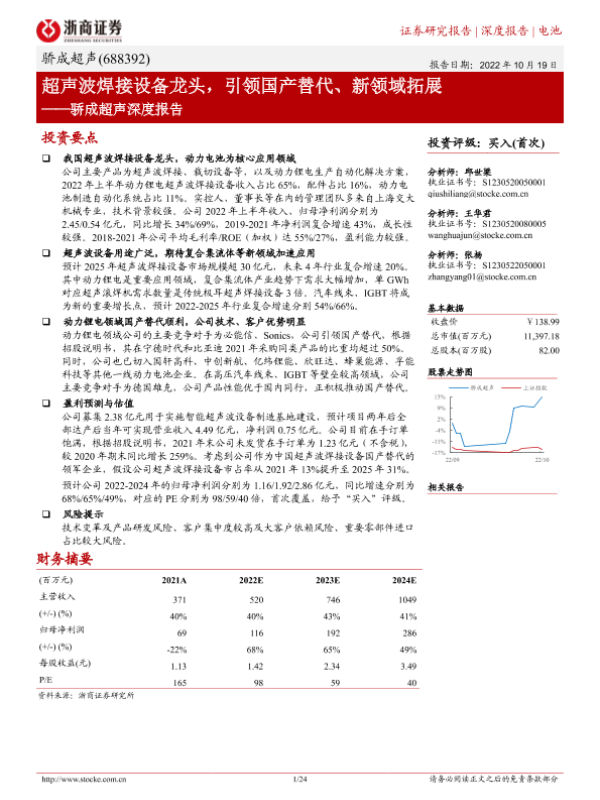 【浙商证券】【20221019】骄成超声深度报告:超声波焊接设备龙头,引领国产替代、新领域拓展-24页 行业研究