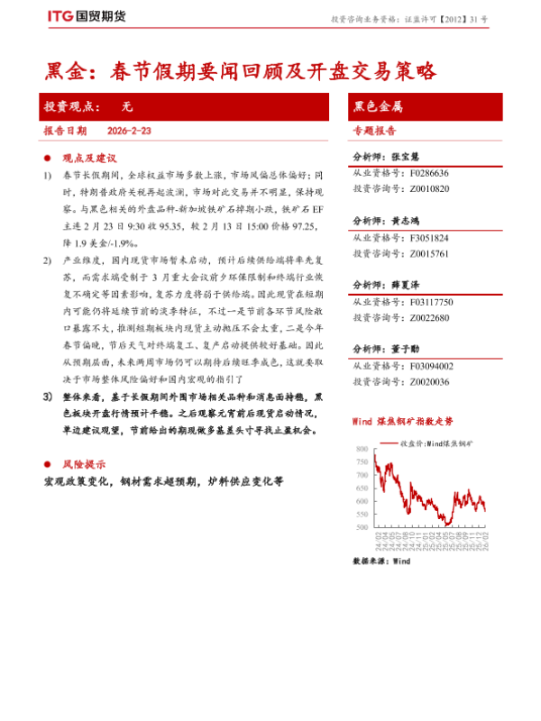 【国贸期货】【202602】黑金:春节假期要闻回顾及开盘交易策略-4页 证券期货研究报告