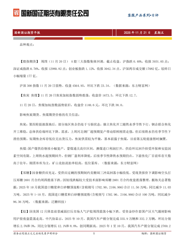 【国新国证期货】【202511】国新国证期货早报-4页 证券期货研究报告
