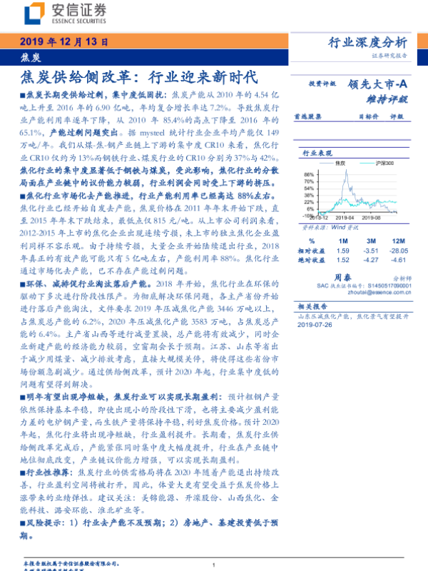 【安信证券】【20191213】焦炭行业深度分析:焦炭供给侧改革:行业迎来新时代-19页 行业研究