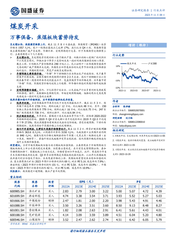 【国盛证券】【20231109】煤炭开采行业点评:万事俱备,焦煤板块蓄势待发-6页 行业研究