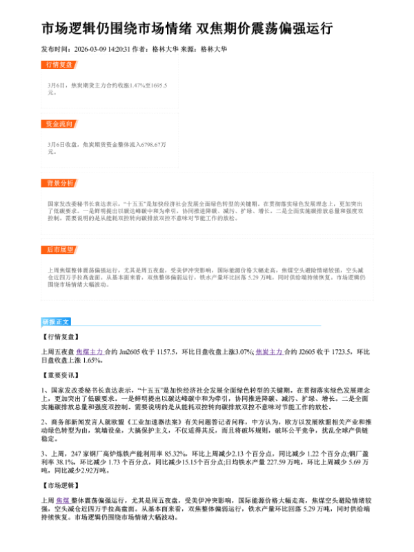 【格林大华】【202603】市场逻辑仍围绕市场情绪 双焦期价震荡偏强运行-2页 证券期货研究报告