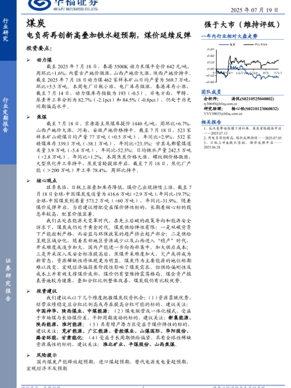 【华福证券】【20250719】煤炭行业:电负荷再创新高叠加铁水超预期,煤价延续反弹-29页 行业研究