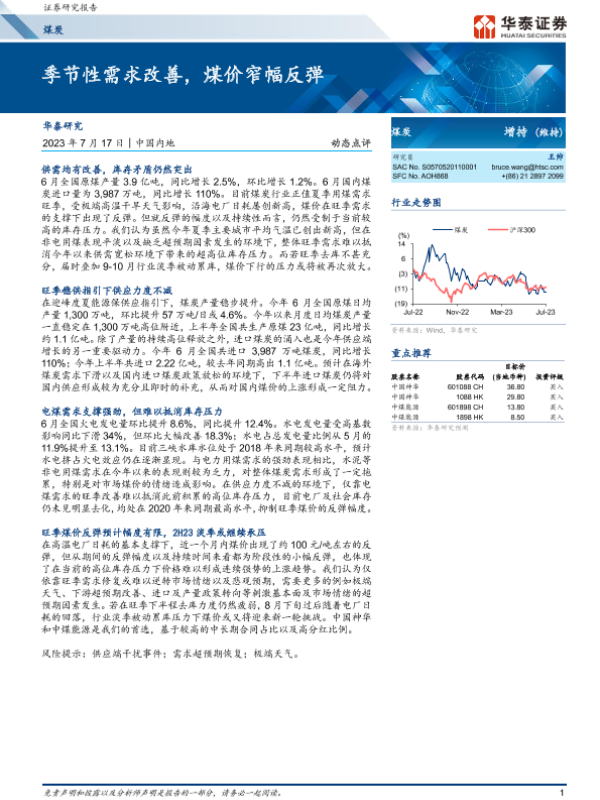 【华泰证券】【20230717】20230717-华泰证券-煤炭动态点评:季节性需求改善,煤价窄幅反弹-17页 行业研究