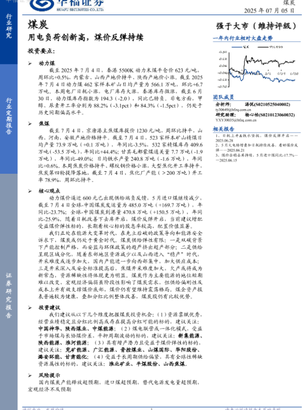 【华福证券】【20250705】用电负荷创新高,煤价反弹持续-28页 行业研究