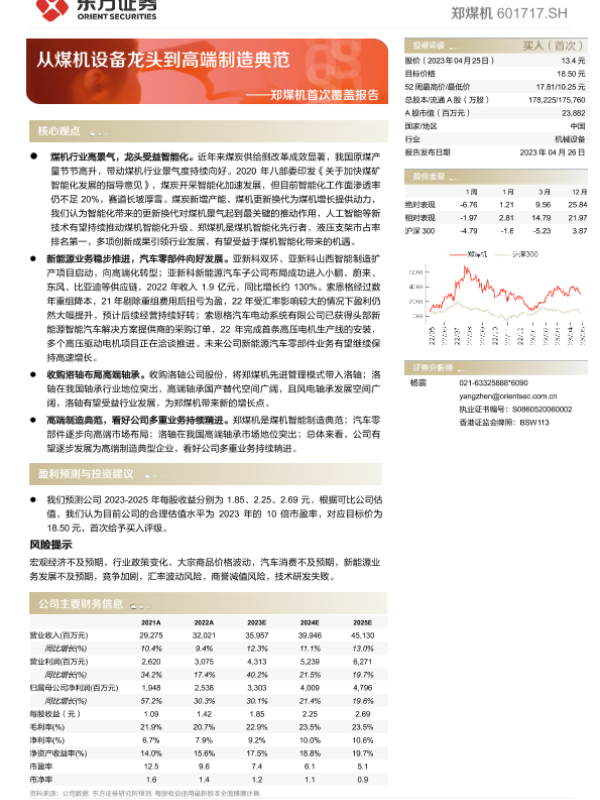 【东方证券】【20230426】郑煤机首次覆盖报告:从煤机设备龙头到高端制造典范-43页 行业研究
