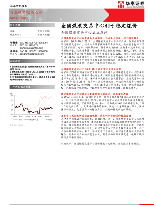 【华泰证券】【20201103】全国煤炭交易中心成立点评:全国煤炭交易中心利于稳定煤价-5页 行业研究