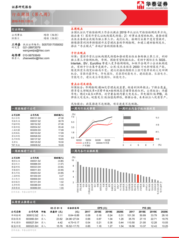 【华泰证券】【20190303】公用事业行业周报(第九周)-10页 行业研究