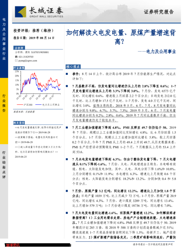 【长城证券】【20190814】如何解读火电发电量、原煤产量增速背离-7页 行业研究