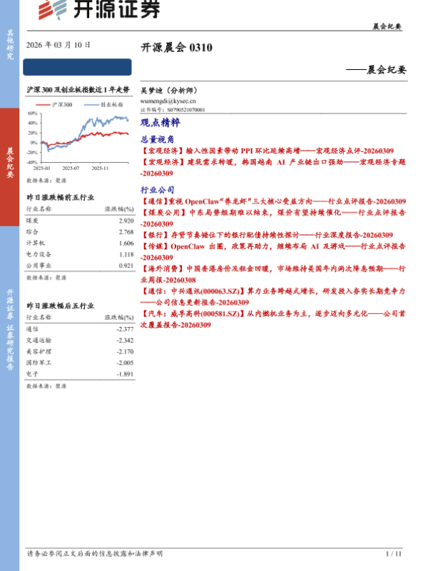 【开源证券】【202603】开源晨会-11页 会议纪要