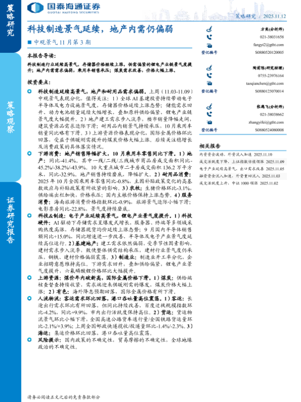 【国泰海通证券】【202511】科技制造景气延续,地产内需仍偏弱-11页 证券期货研究报告