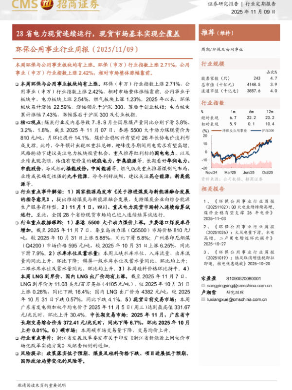 【海通证券】【202511】环保公用事业行业周报(2025/11/09)-19页 证券期货研究报告