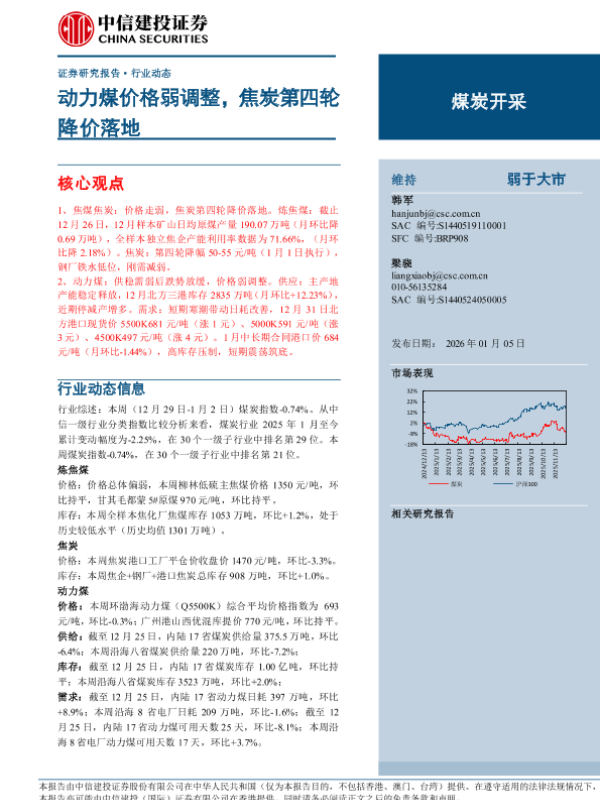 【中信建投证券】【202601】动力煤价格弱调整,焦炭第四轮降价落地-27页 证券期货研究报告