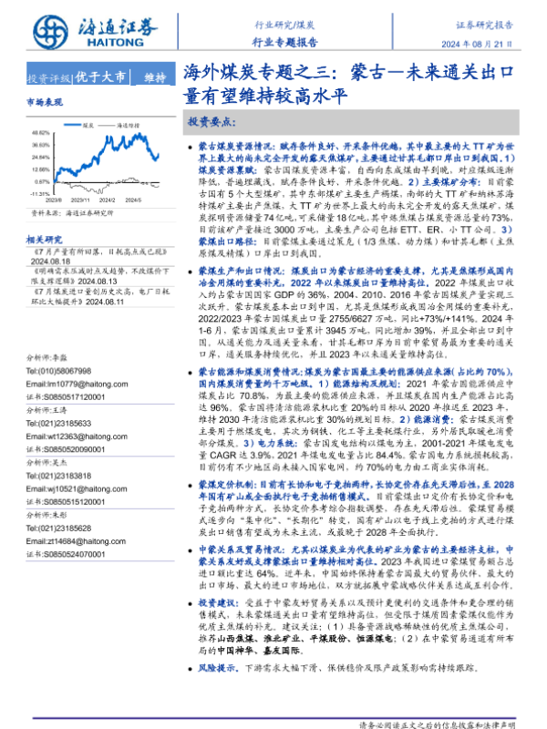 【海通证券】【20240821】煤炭行业海外煤炭市场专题之三:蒙古-未来通关出口量有望维持较高水平-21页 行业研究