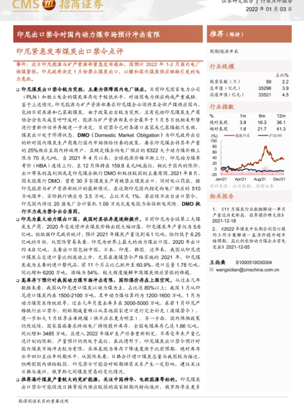 【海通证券】【20220103】能源开采:印尼紧急发布煤炭出口禁令点评-6页 证券期货研究报告
