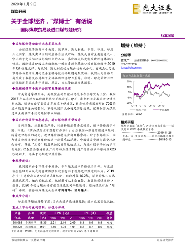 【光大证券】【20200109】关于全球经济,“煤博士”有话说——国际煤炭贸易及进口煤专题研究-21页 行业研究