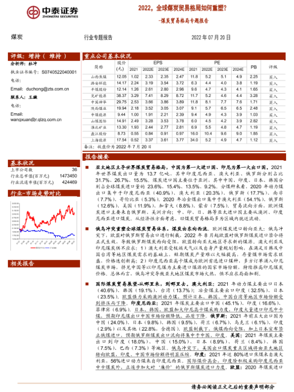 【中泰证券】【20220720】2022,全球煤炭贸易格局如何重塑?-38页 行业研究