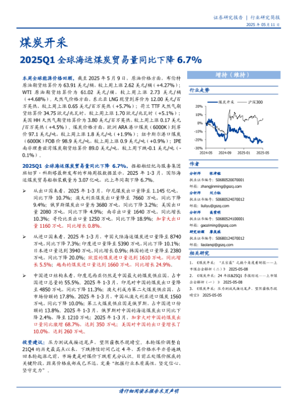 【国盛证券】【20250511】煤炭开采行业研究简报:2025Q1全球海运煤炭贸易量同比下降6.7%-12页 行业研究