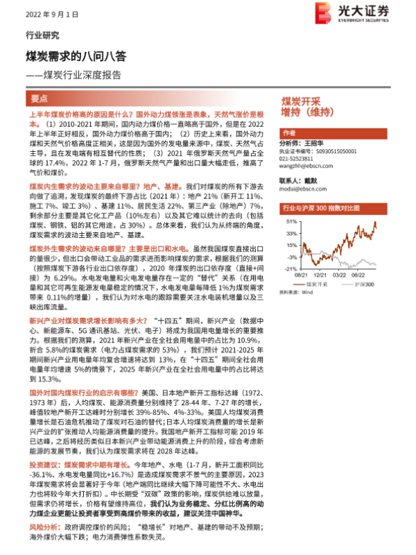 【光大证券】【20220901】煤炭需求的八问八答-39页 行业研究