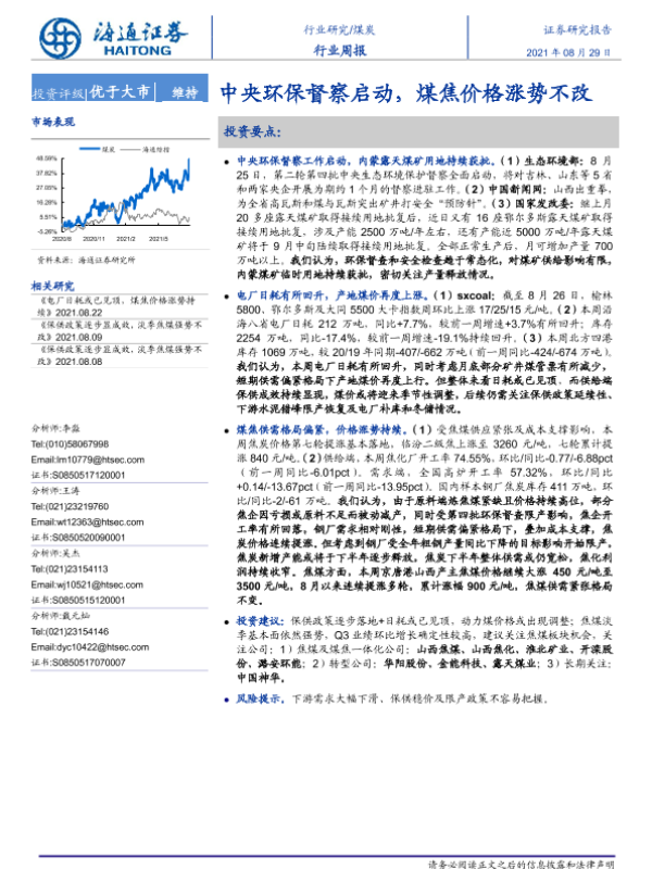 【海通证券】【20210829】海通证券-煤炭行业周报:中央环保督察启动,煤焦价格涨势不改-2页 行业研究
