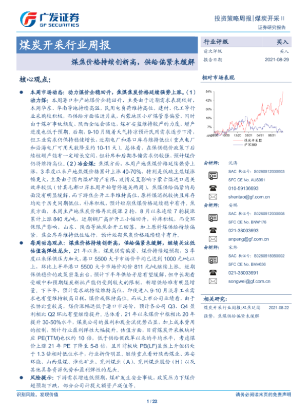 【广发证券】【20210829】20210829-广发证券-煤炭开采行业周报:煤焦价格持续创新高,供给偏紧未缓解-22页 行业研究