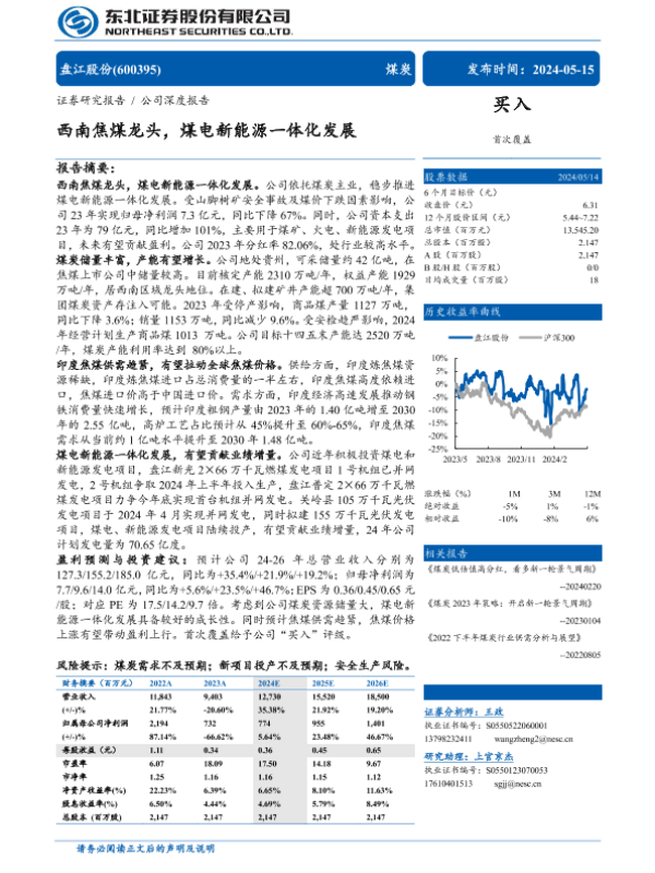 【东北证券】【20240515】盘江股份(600395)西南焦煤龙头,煤电新能源一体化发展-39页 行业研究
