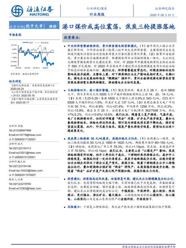 【海通证券】【20200601】20200601-海通证券-煤炭行业周报:港口煤价或高位震荡,焦炭三轮提涨落地-2页 行业研究