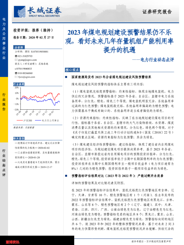 【长城证券】【20200227】2023年煤电规划建设预警结果仍不乐观,看好未来几年存量机组产能利用率提升的机遇-4页 行业研究