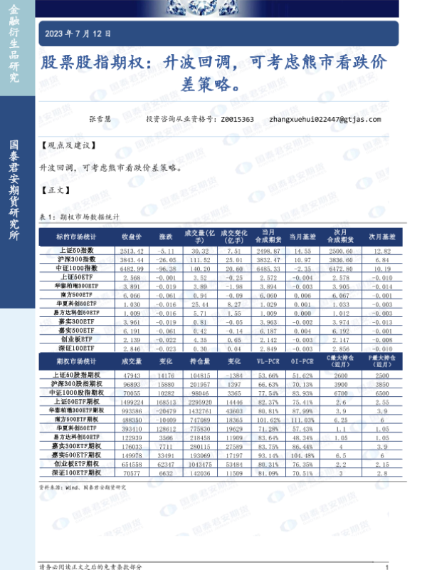 【国泰君安期货】【20230712】股票股指期权:升波回调,可考虑熊市看跌价差策略-15页 行业研究