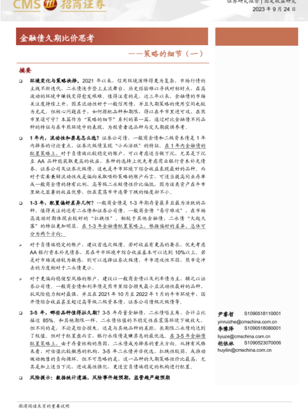 【海通证券】【20230924】策略的细节(一):金融债久期比价思考-17页 行业研究