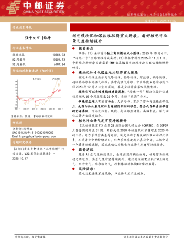 【中邮证券】【202511】电力设备:核电模块化和熔盐堆取得重大进展,看好核电行业景气度持续提升-3页 证券期货研究报告