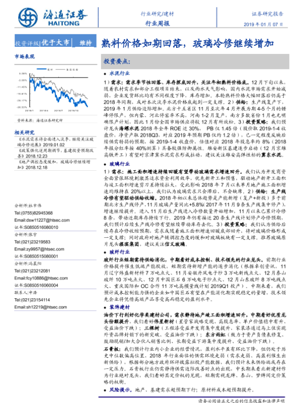 【海通证券】【20190107】建材行业周报:熟料价格如期回落,玻璃冷修继续增加-19页 行业研究