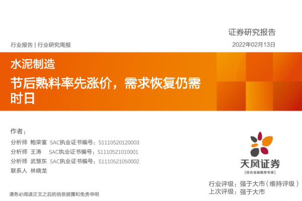 【天风证券】【20220213】节后熟料率先涨价,需求恢复仍需时日-23页 行业研究