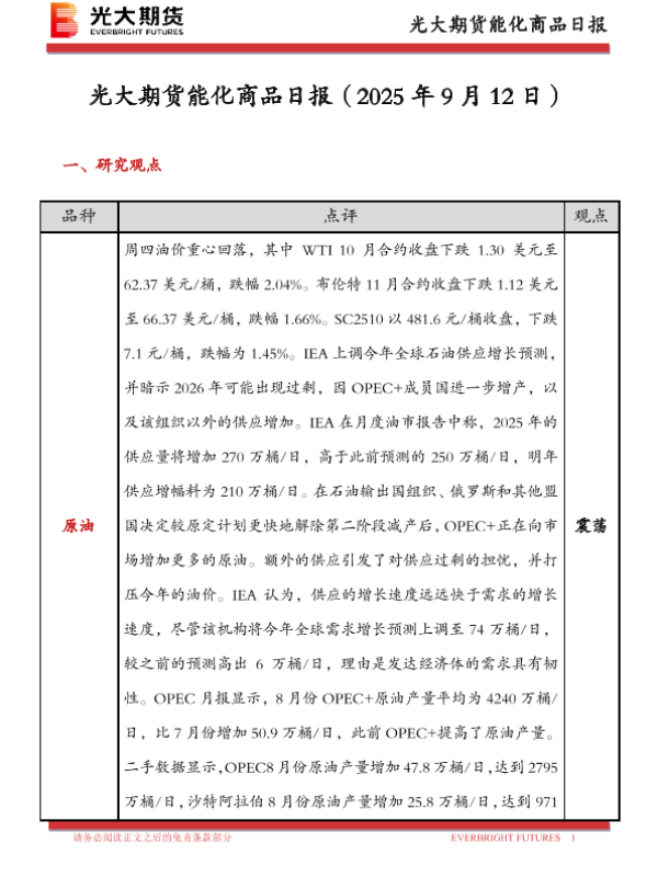 【光大期货】【202509】光大期货能化商品日报-19页 证券期货研究报告