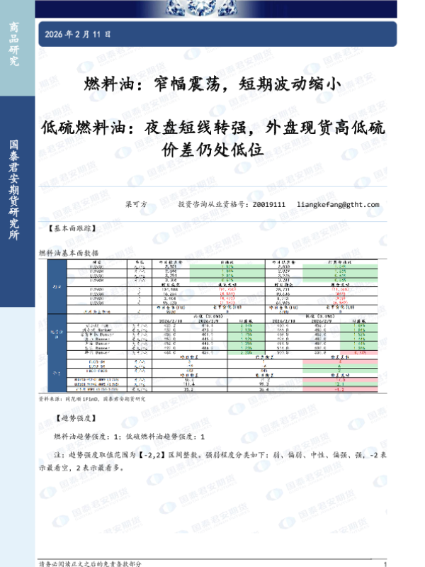 【国泰君安期货】【202602】燃料油:窄幅震荡,短期波动缩小-2页 证券期货研究报告