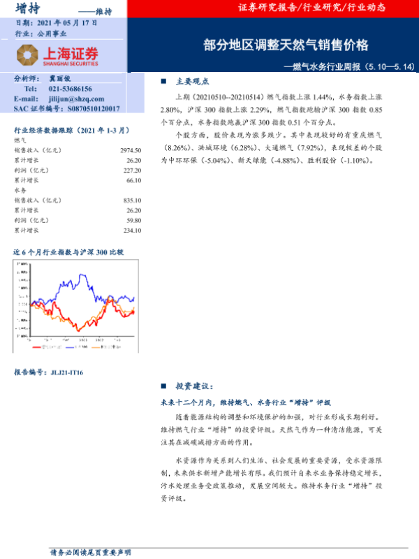 【上海证券】【20210517】燃气水务行业周报:部分地区调整天然气销售价格-7页 行业研究
