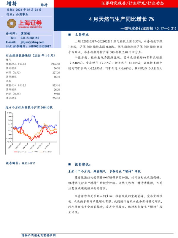 【上海证券】【20210712】燃气水务行业周报:国际能源署发布《天然气分析及展望2021-2024》-7页 行业研究