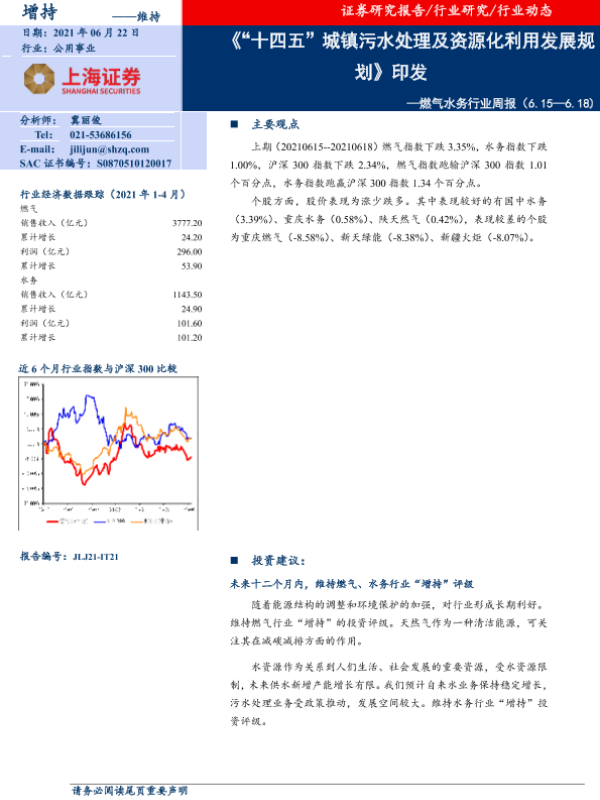 【上海证券】【20210622】'十四五'城镇污水处理及资源化利用发展规划印发-8页 行业研究