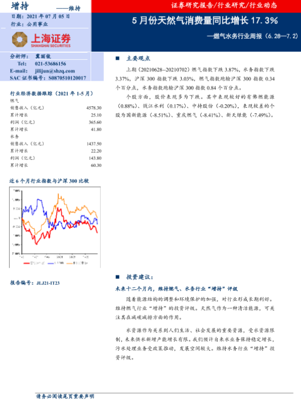 【上海证券】【20210705】5月份天然气消费量同比增长17.3%-7页 行业研究