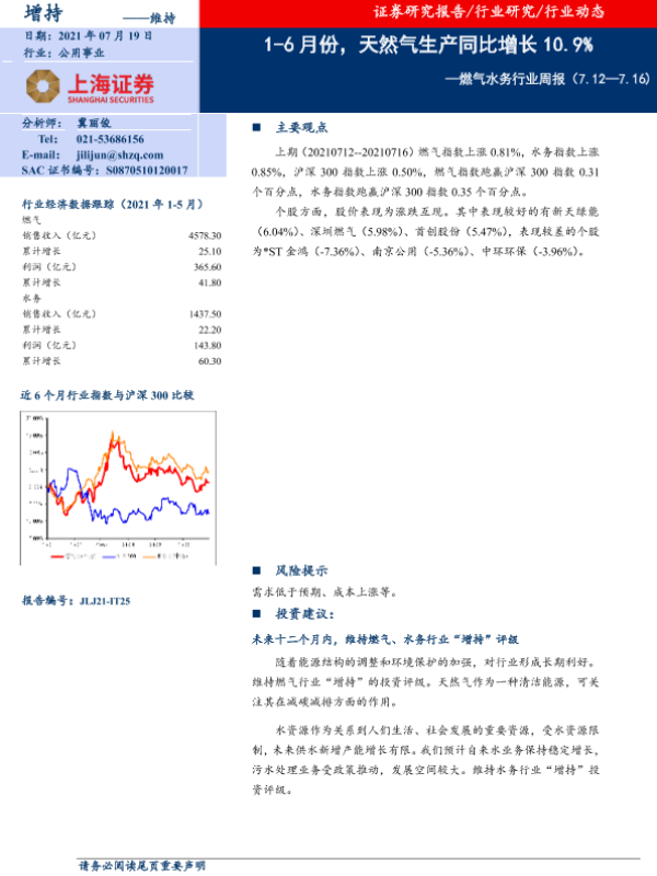 【上海证券】【20210719】燃气水务行业周报:1-6月份,天然气生产同比增长10.9%-7页 行业研究