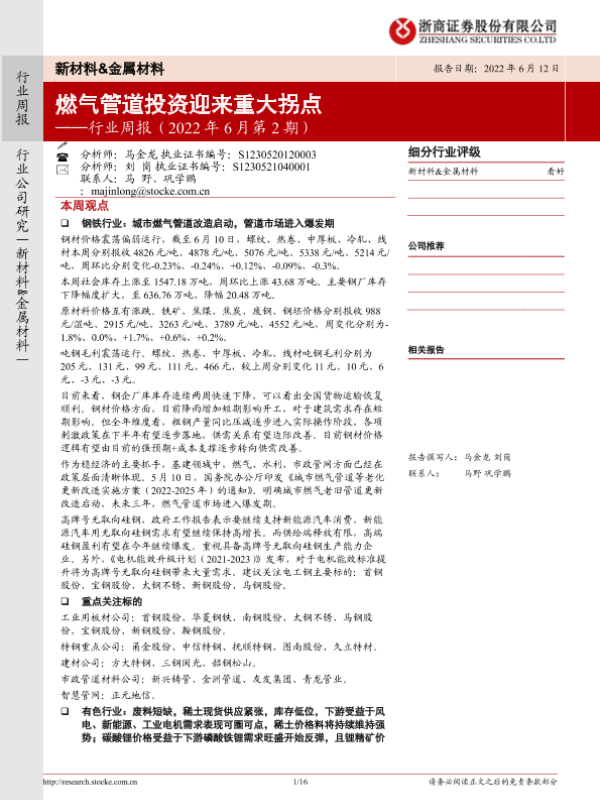 【浙商证券】【20220612】20220612-浙商证券-新材料&金属材料行业周报(2022年6月第2期):燃气管道投资迎来重大拐点-16页 行业研究