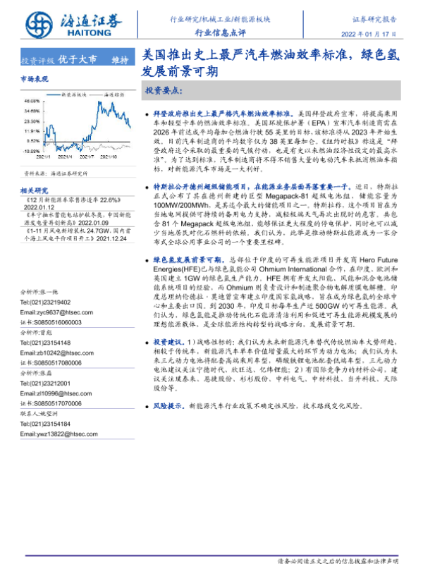 【海通证券】【20220117】20220117-海通证券-新能源板块行业信息点评:美国推出史上最严汽车燃油效率标准,绿色氢发展前景可期-2页 行业研究