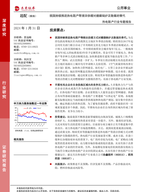 【东莞证券】【20240131】2024-01-31-热电联产行业专题报告-我国持续推进热电联产等清洁供暖对燃煤锅炉及散煤的替代-15页 行业研究