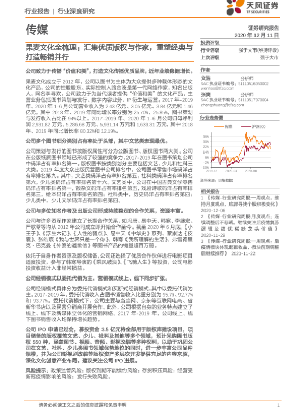 【天风证券】【20201211】传媒行业:果麦文化全梳理:汇集优质版权与作家,重塑经典与打造畅销并行-31页 行业研究