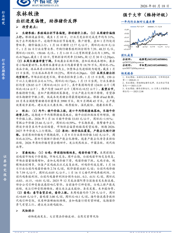 【华福证券】【202601】出栏进度偏慢,助推猪价反弹-12页 证券期货研究报告