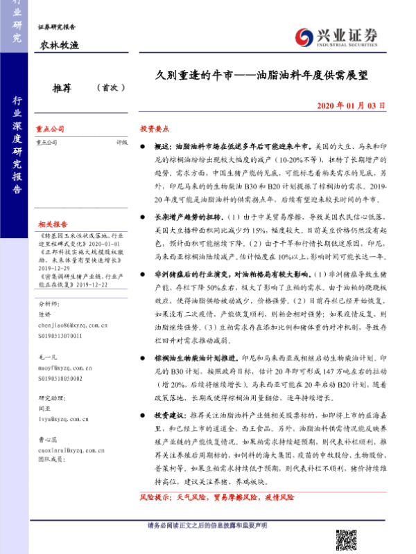 【兴业证券】【20200103】久别重逢的牛市——油脂油料年度供需展望-18页 行业研究