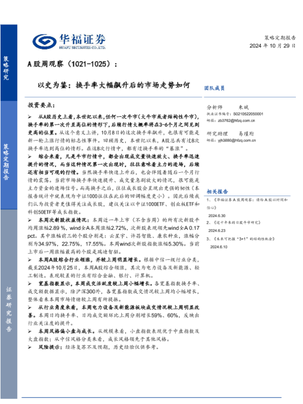 【华福证券】【20241029】A股周观察:以史为鉴,换手率大幅飙升后的市场走势如何-12页 行业研究