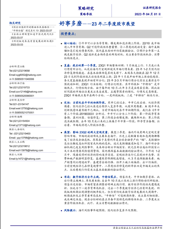 【海通证券】【20230401】23年二季度股市展望:好事多磨-20页 行业研究