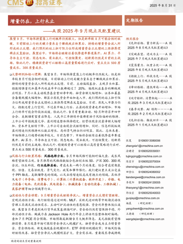 【海通证券】【202509】A股2025年9月观点及配置建议:增量仍在,上行未止-86页 证券期货研究报告